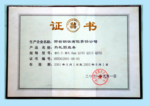 熱軋圓盤條獲河北省質(zhì)量信得過產(chǎn)品