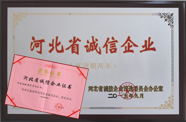 2015年9月,邢鋼被評(píng)選為“河北省誠信企業(yè)”。