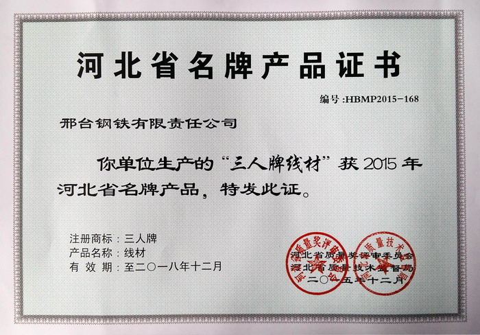 邢鋼線材再獲“河北省名牌產(chǎn)品”稱號