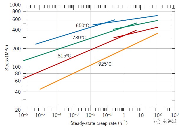 同一溫度下,蠕變第二階段應力σ與穩(wěn)態(tài)蠕變速率ε之間,在雙對數(shù)坐標中呈線性經(jīng)驗關系。