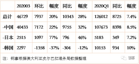 黑德蘭港3月和Q1鐵礦石出口至中日韓數據