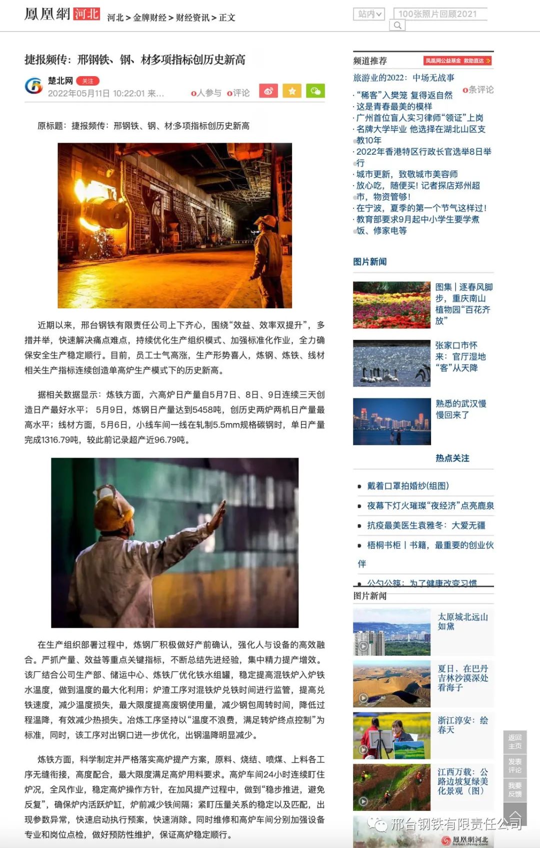 近期以來,邢臺(tái)鋼鐵有限責(zé)任公司上下齊心,圍繞“效益、效率雙提升”,多措并舉,快速解決痛點(diǎn)難點(diǎn),持續(xù)優(yōu)化生產(chǎn)組織模式、加強(qiáng)標(biāo)準(zhǔn)化作業(yè),全力確保安全生產(chǎn)穩(wěn)定順行。目前,員工士氣高漲,生產(chǎn)形勢喜人,煉鋼、煉鐵、線材相關(guān)生產(chǎn)指標(biāo)連續(xù)創(chuàng)造單高爐生產(chǎn)模式下的歷史新高。