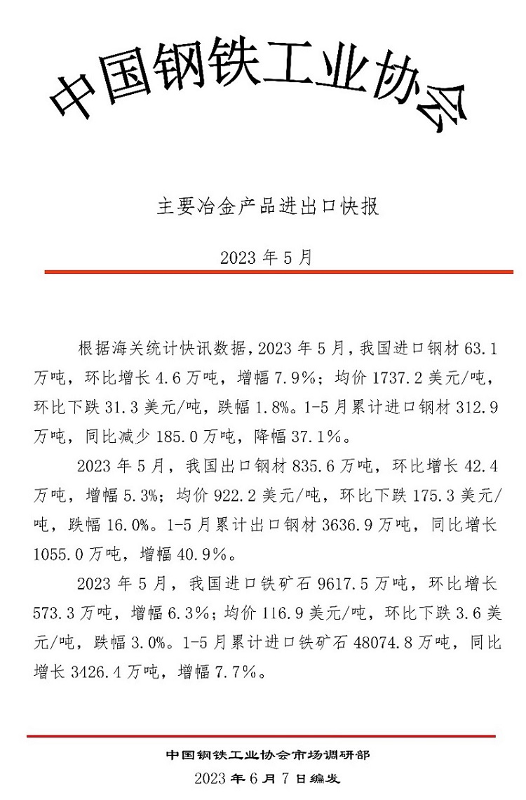 來源:中國(guó)鋼鐵工業(yè)協(xié)會(huì) 發(fā)布時(shí)間:2023年06月09日 點(diǎn)擊數(shù):