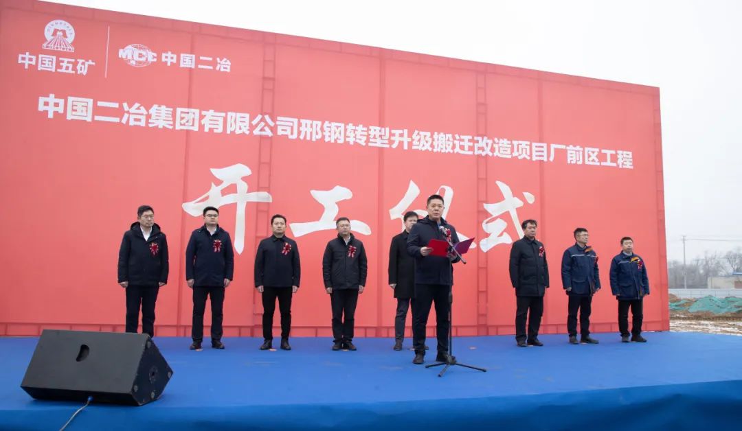 On January 16th, the groundbreaking ceremony for the Plant Front Area Project of Xingtai Steel's transformation, upgrading, and relocation renovation project was held, marking the official entry of this project into a new phase of rapid advancement. The Secretary of the Wei County Party Committee, Cui Yaopeng, the Chairman of Xingtai Steel, Zhang Yuming, and the Deputy General Manager of China second MCC group, Ju Shuai, attended the ceremony and delivered speeches respectively.
