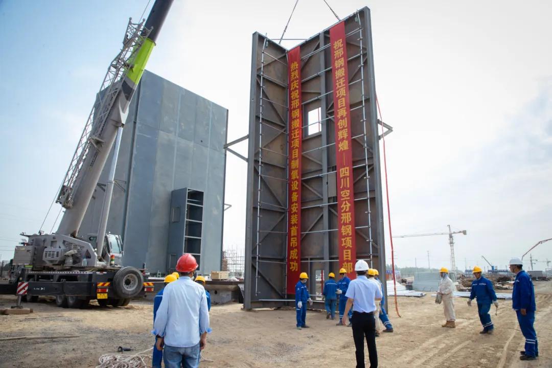 On May 30th, at the site of the transformation, upgrading, relocation and renovation project of Xingtai Iron and Steel Co., Ltd., the air separation equipment of the oxygen production project was being installed with the towering tower crane. The construction of the new Xingtai Iron and Steel, which is in full swing, has entered a new stage of equipment installation, demonstrating the courage, drive and spirit of "striving hard".