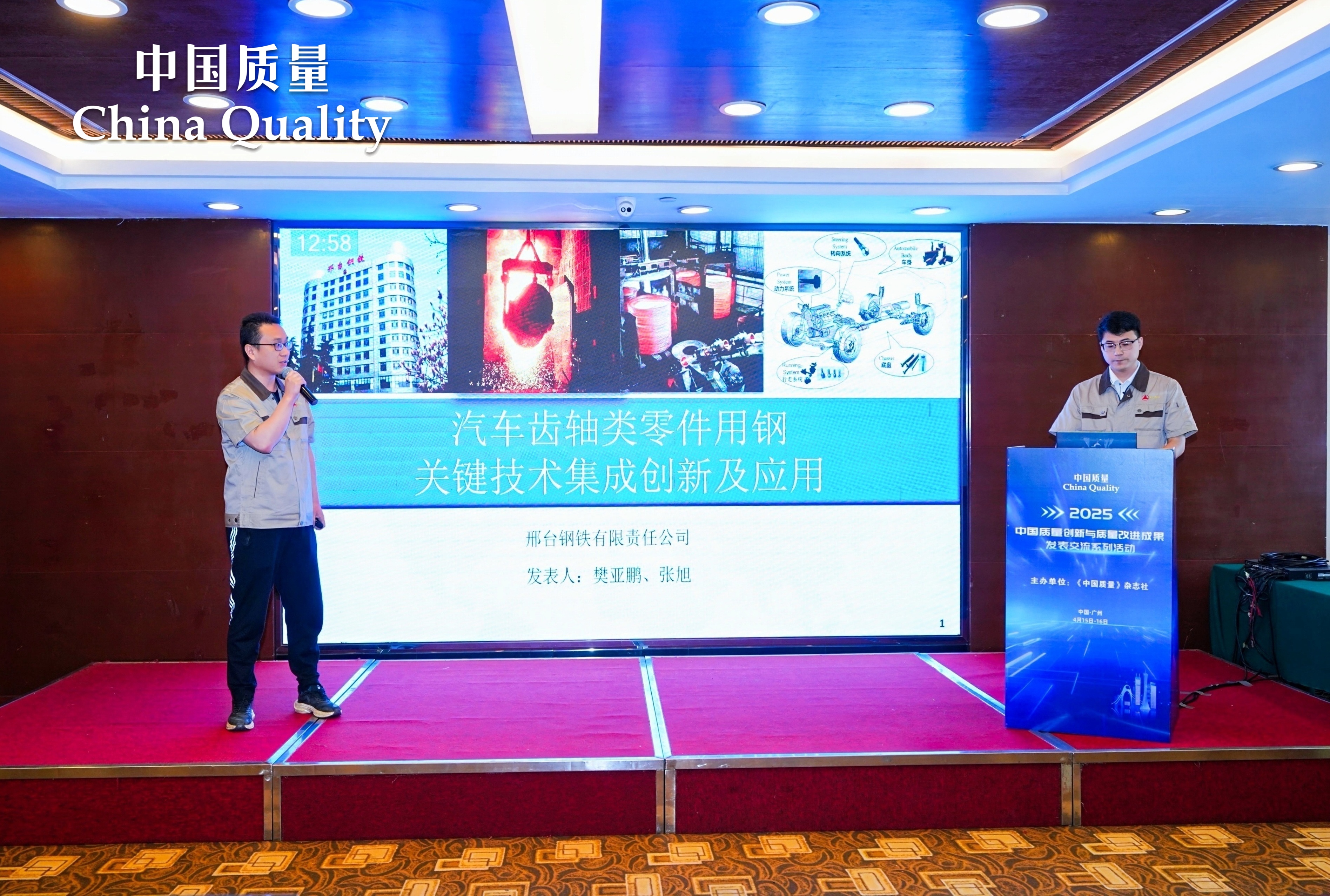 近日,由《中國(guó)質(zhì)量》雜志社主辦的“2025年中國(guó)質(zhì)量創(chuàng)新與質(zhì)量改進(jìn)成果發(fā)表交流系列活動(dòng)”在廣東省廣州市圓滿落幕。邢臺(tái)鋼鐵有限責(zé)任公司(以下簡(jiǎn)稱“邢鋼”)申報(bào)的《汽車齒軸類零件用鋼關(guān)鍵技術(shù)集成創(chuàng)新及應(yīng)用》項(xiàng)目,憑借其顯著的創(chuàng)新性、實(shí)用性和示范性,從眾多參評(píng)成果中脫穎而出,榮獲“示范級(jí)”最高獎(jiǎng)項(xiàng)。這是繼2023年高端冷鐓鋼質(zhì)量攻關(guān)項(xiàng)目、2024年新能源汽車用鋼技術(shù)創(chuàng)新項(xiàng)目之后,邢鋼連續(xù)第三年摘得該評(píng)選活動(dòng)最高獎(jiǎng)項(xiàng)。